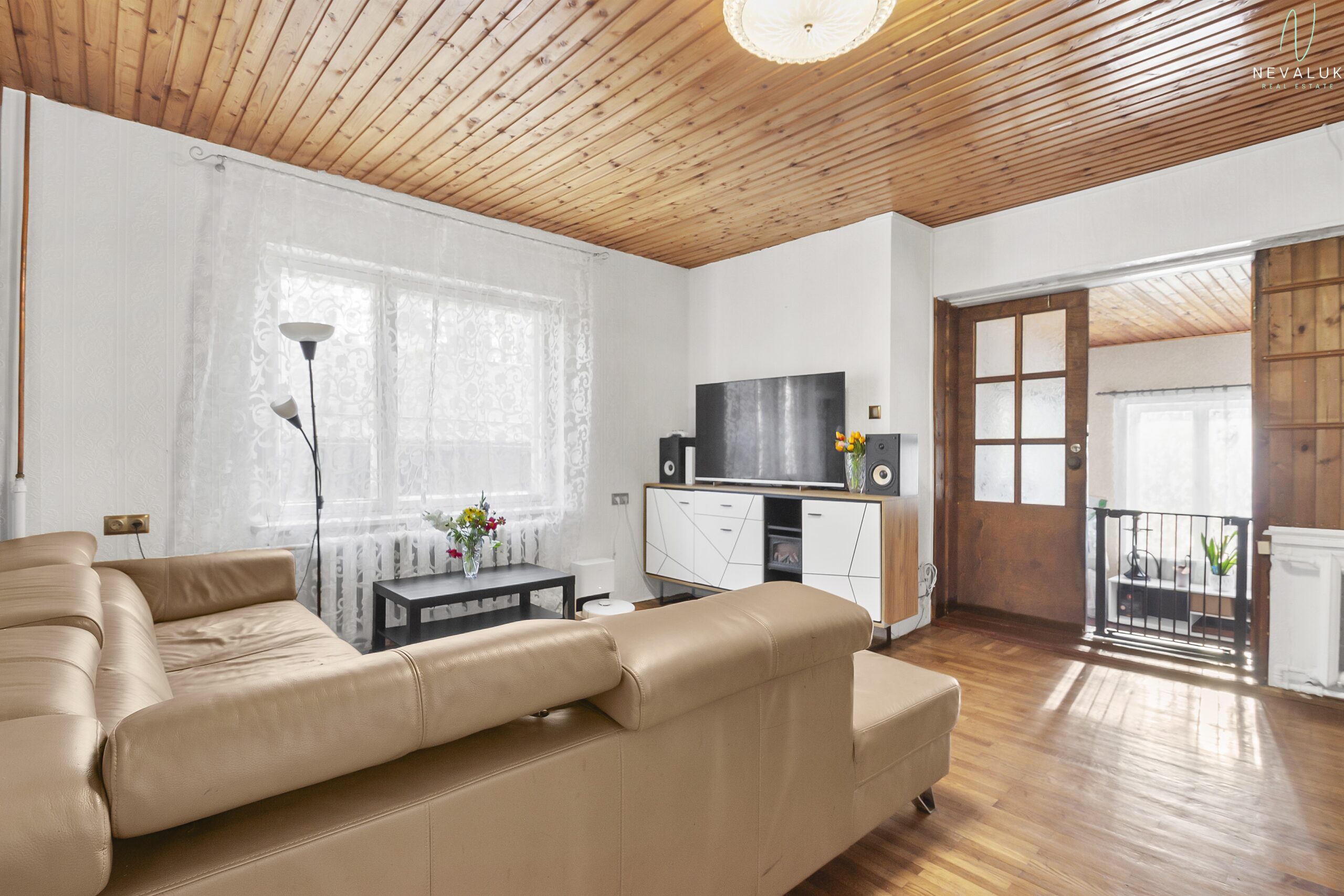 On the second floor, a spacious and bright open kitchen-dining room awaits you, from where a hatch leads to the attic. The kitchen has all the modern comforts, as well as wide window sills, which seem to be made for dreaming – you can sit there with a cup of tea in your hand, watching the dance of colourful leaves in autumn or the first snowfalls in winter.
