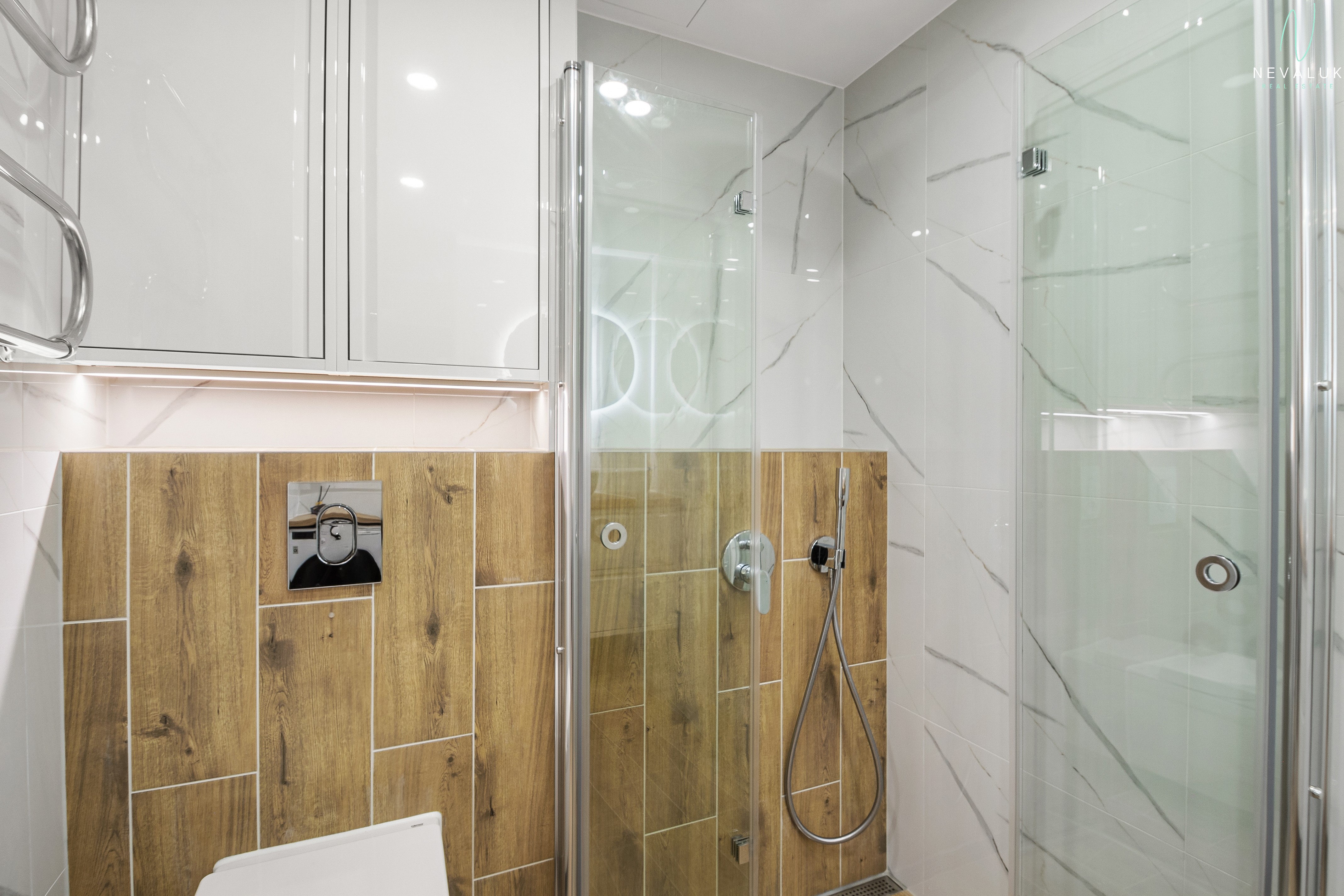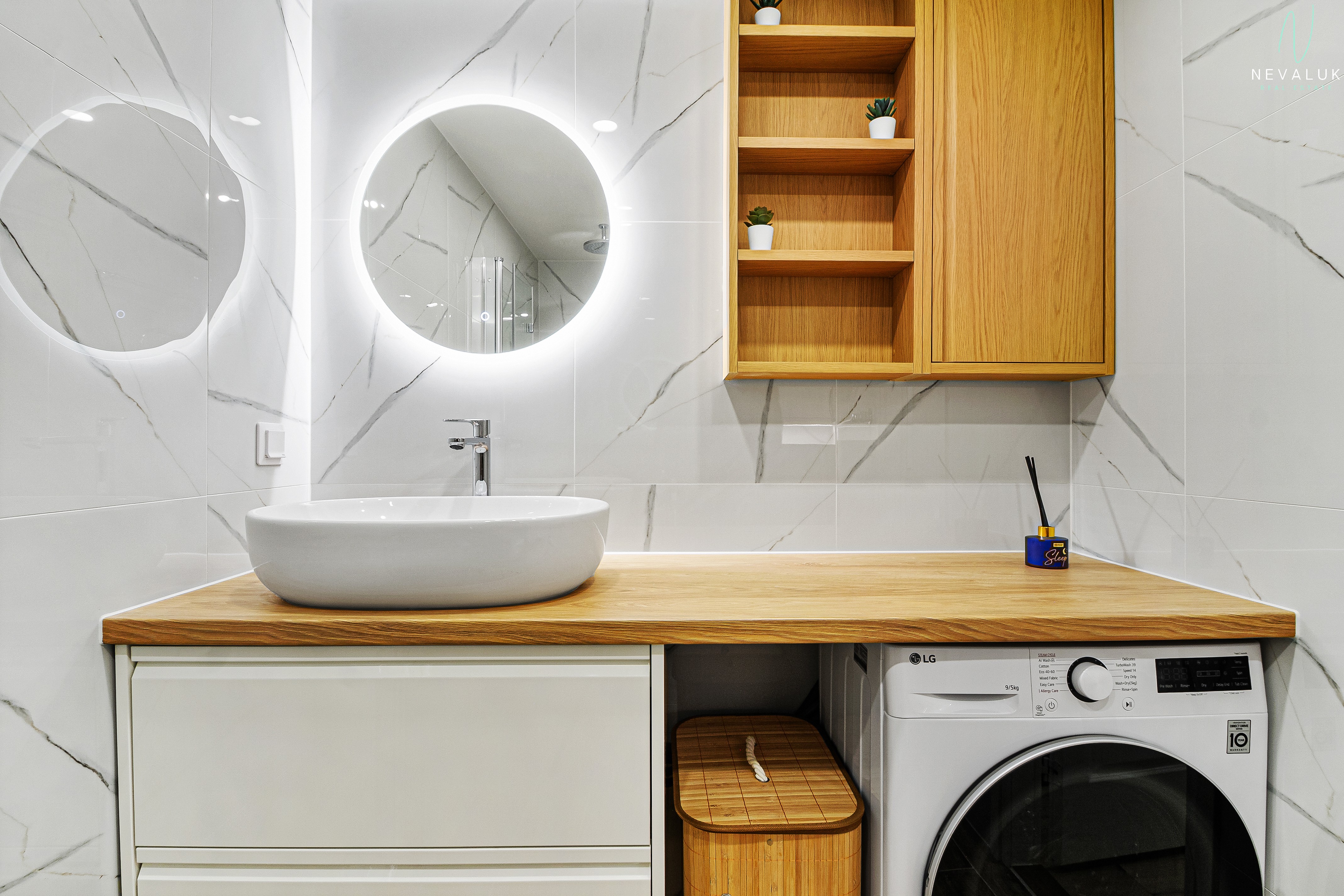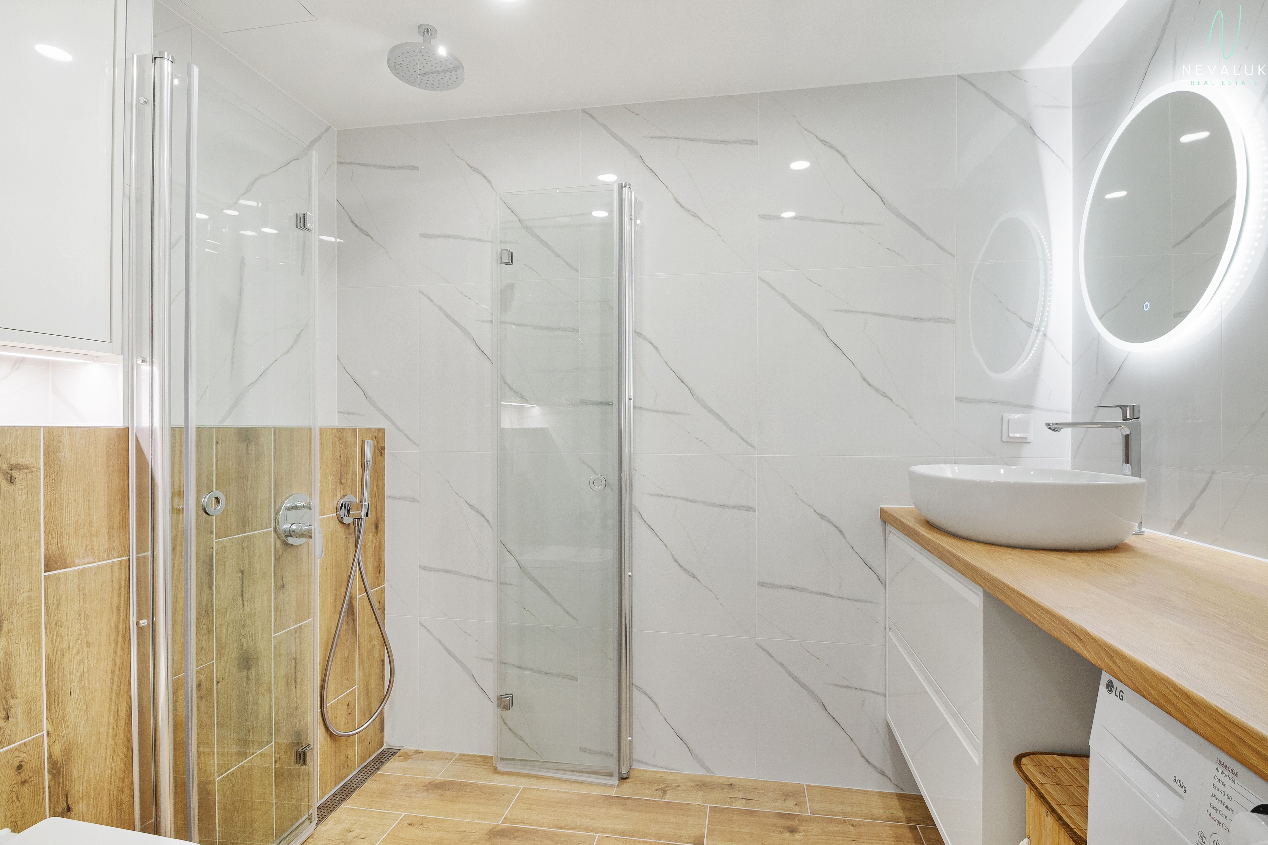 Vannituba on tõeline mugavustsoon – uus torustik, dušš, 9 kg pesumasin-kuivati, kvaliteetsed segistid (Grohe, Hansgrohe, Oras) ning elektriline põrandaküte, mida saab juhtida Wi-Fi termostaadiga.
