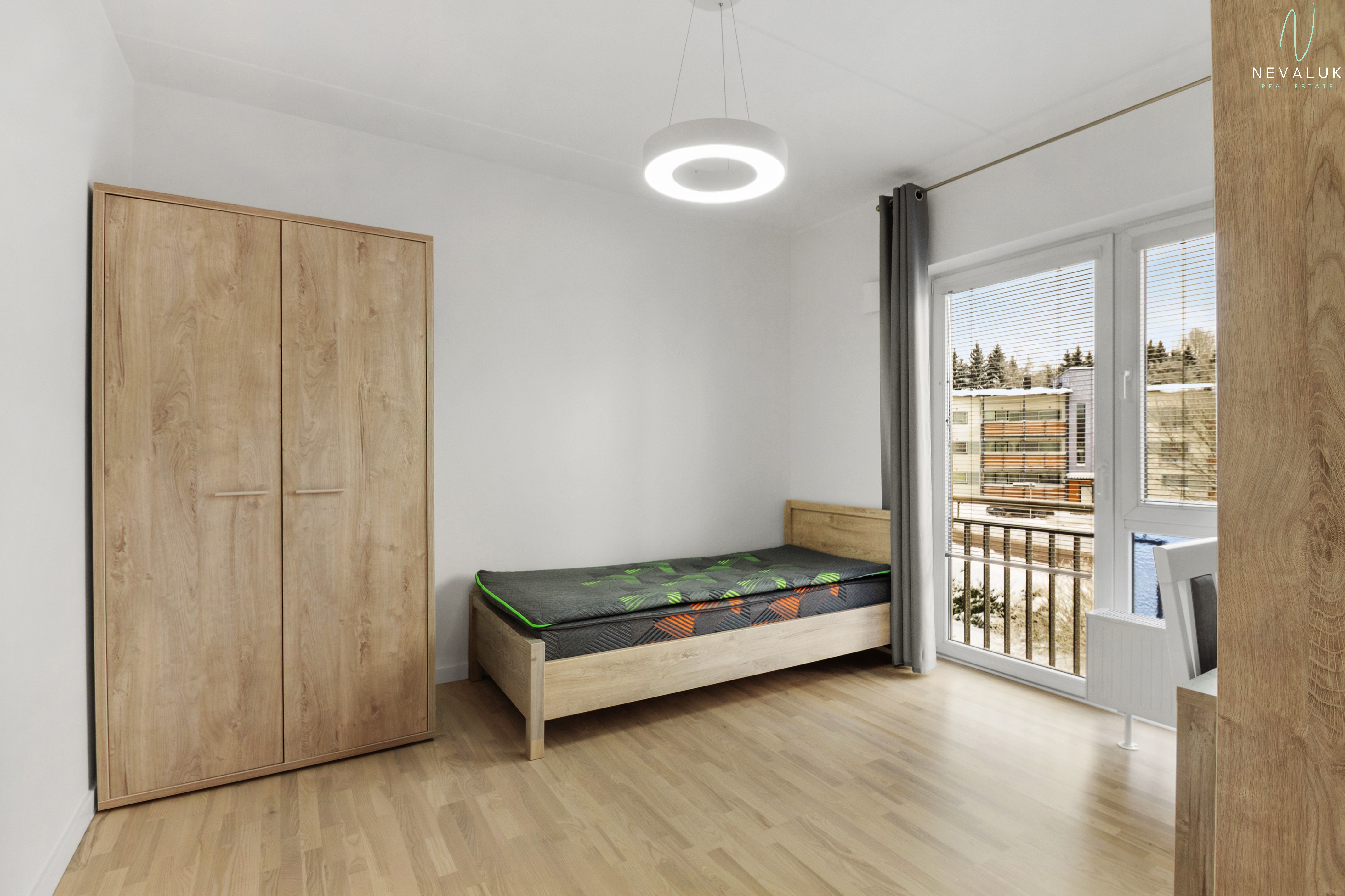 Korteris on kaks magamistuba, mõlemal prantsuse rõdud. Üks magamistuba jääb tänava poole, teine aga vaikse hoovi poole, kus kevaditi rõõmustab silma õitsev sirelipõõsas. Täiendava turvatunde loob paigaldatud valvesüsteem.