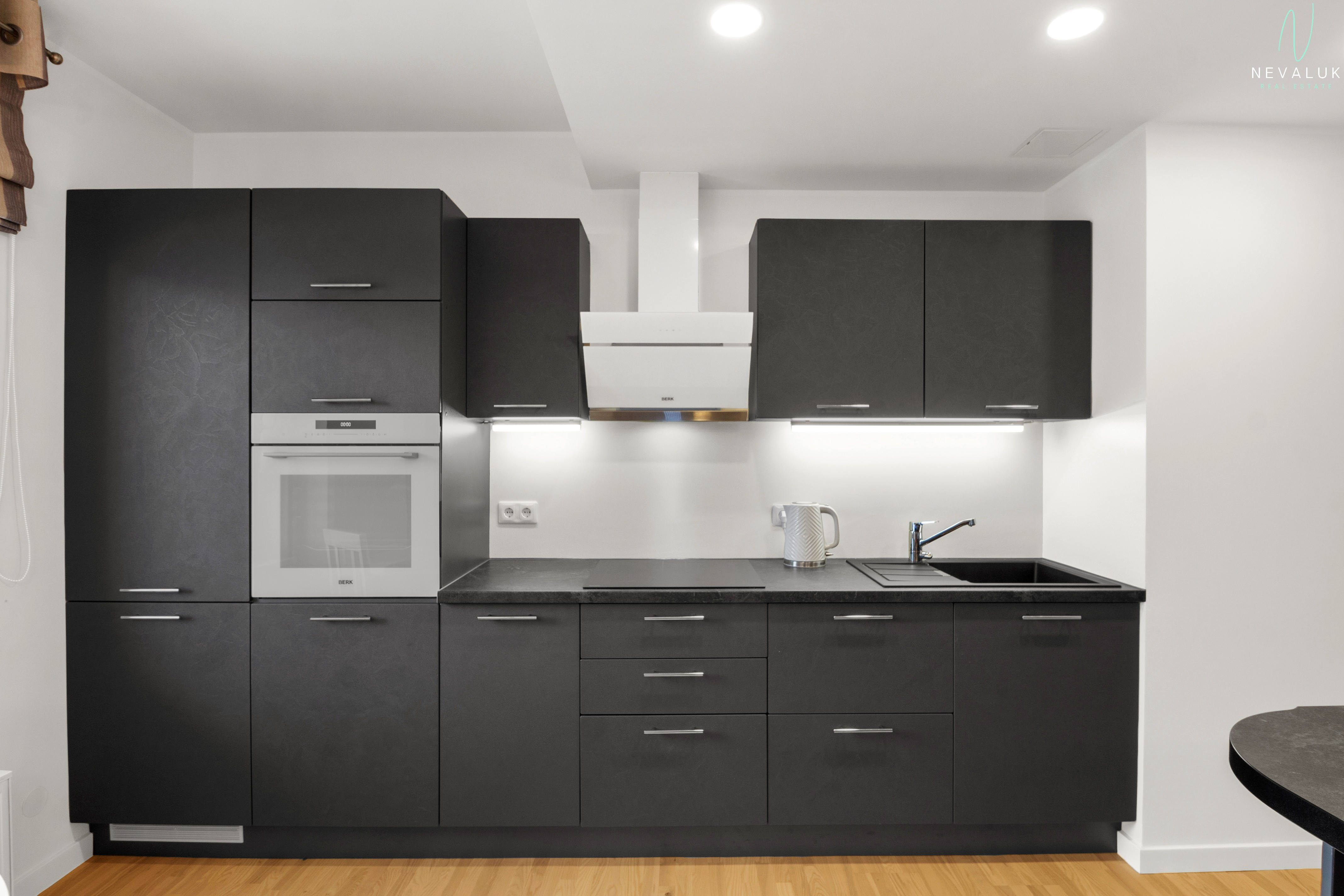 Köök: induktsioonpliit, avatud köök, külmik, köögimööbel