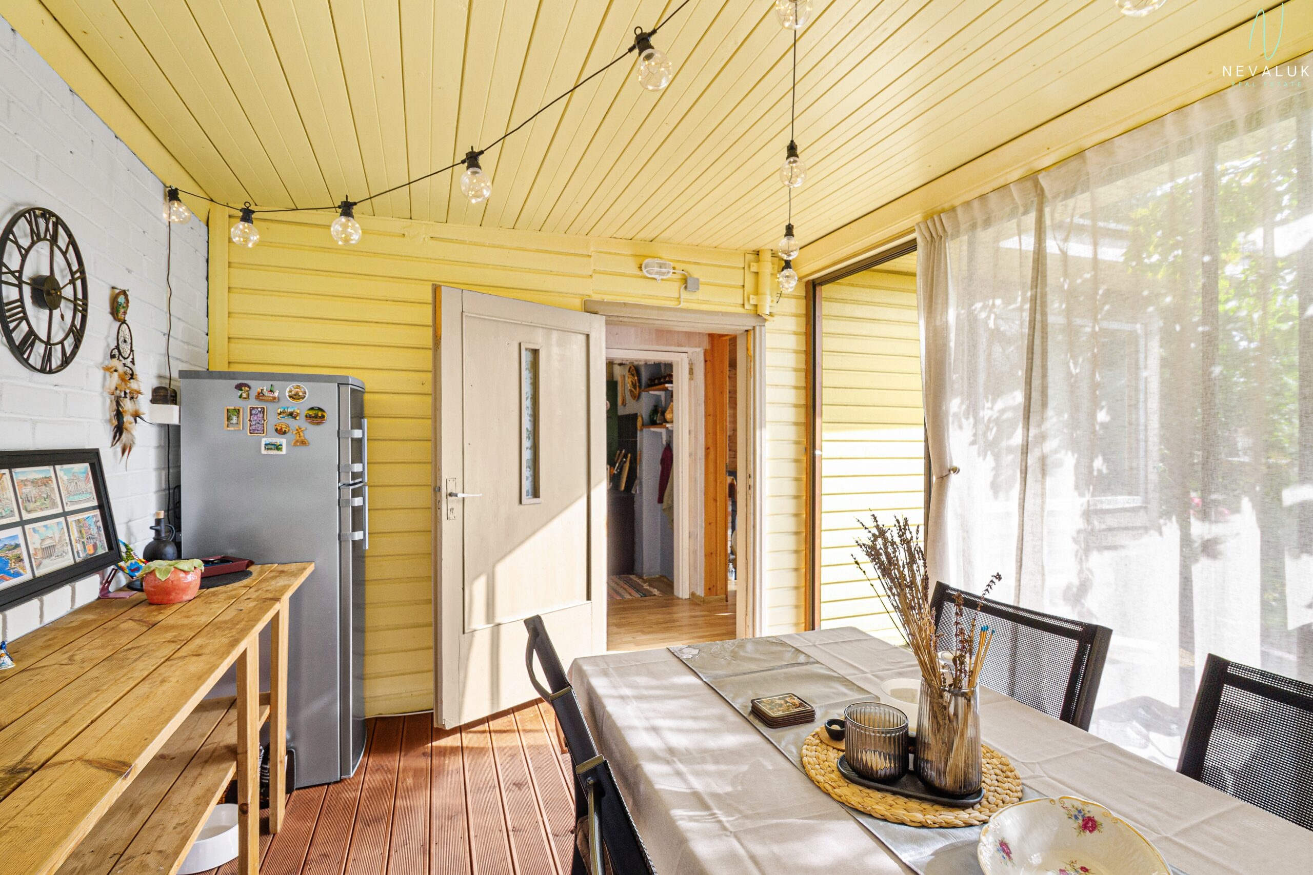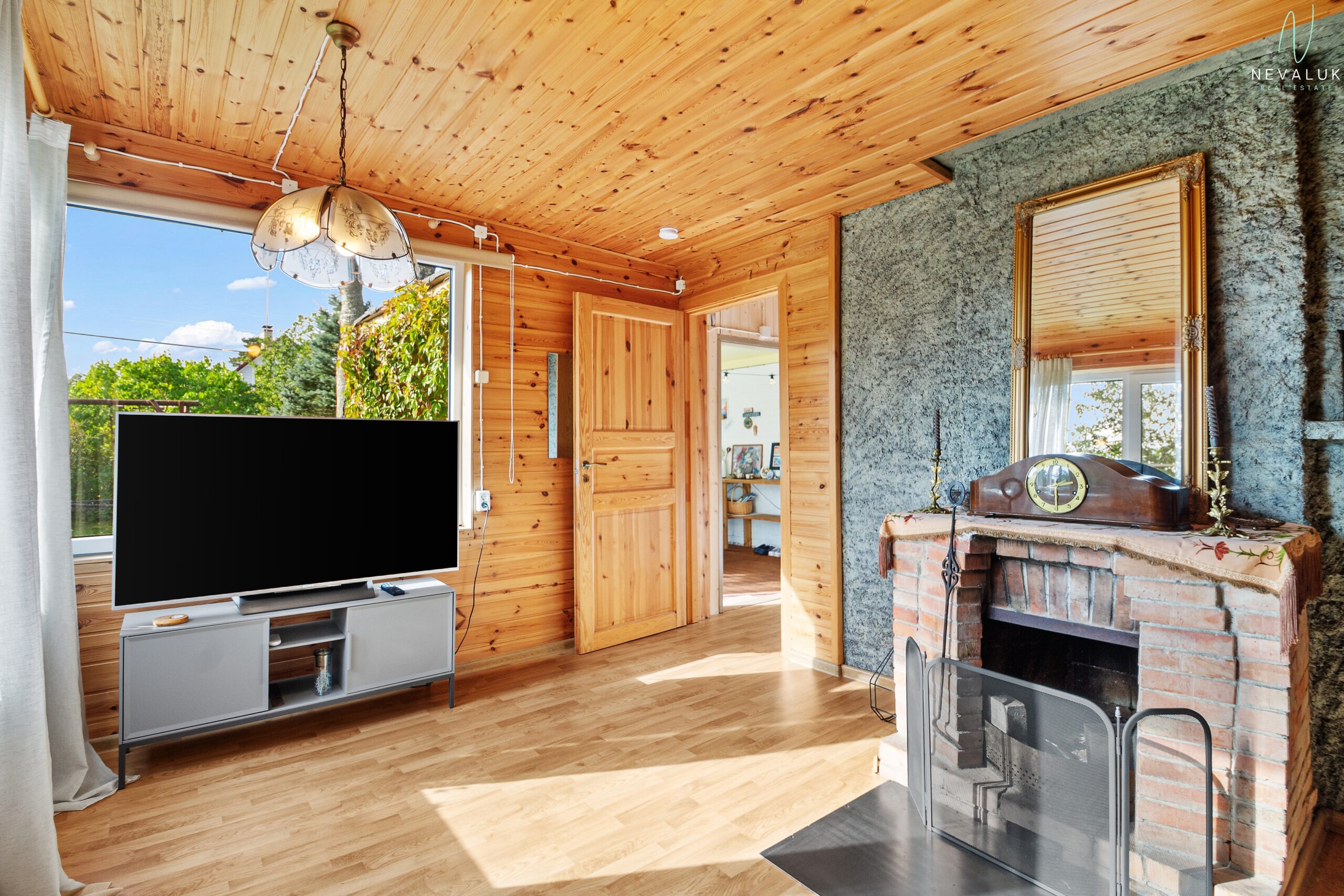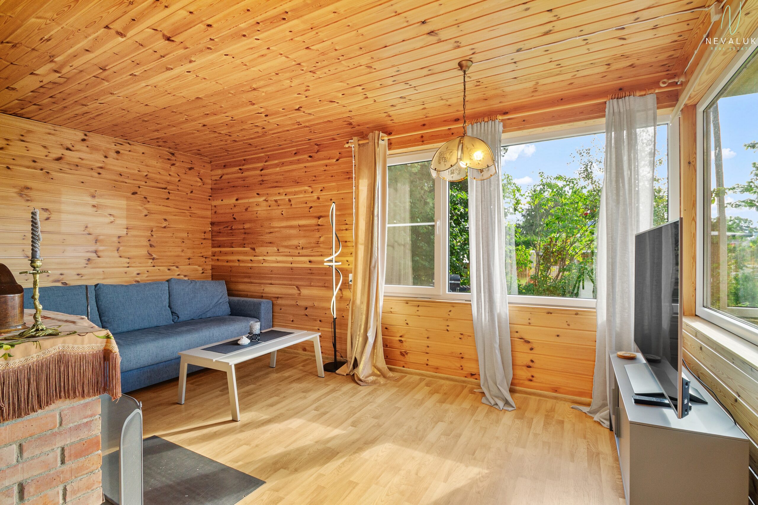 Suvila südameks on valgusküllane elutuba suurte akende, lahtikäiva diivani ja kaminaga, mis toob soojust ning loob romantilise meeleolu ka jahedamatel õhtutel. Elutoast viivad sammud kahte väiksemasse tuppa, mida saab kasutada magamistubadena, ning edasi pesuruumi, kus on 30-liitrine boiler ja saun. Pesuruumist viib uks otse maja taha – mugav lahendus pärast leili.