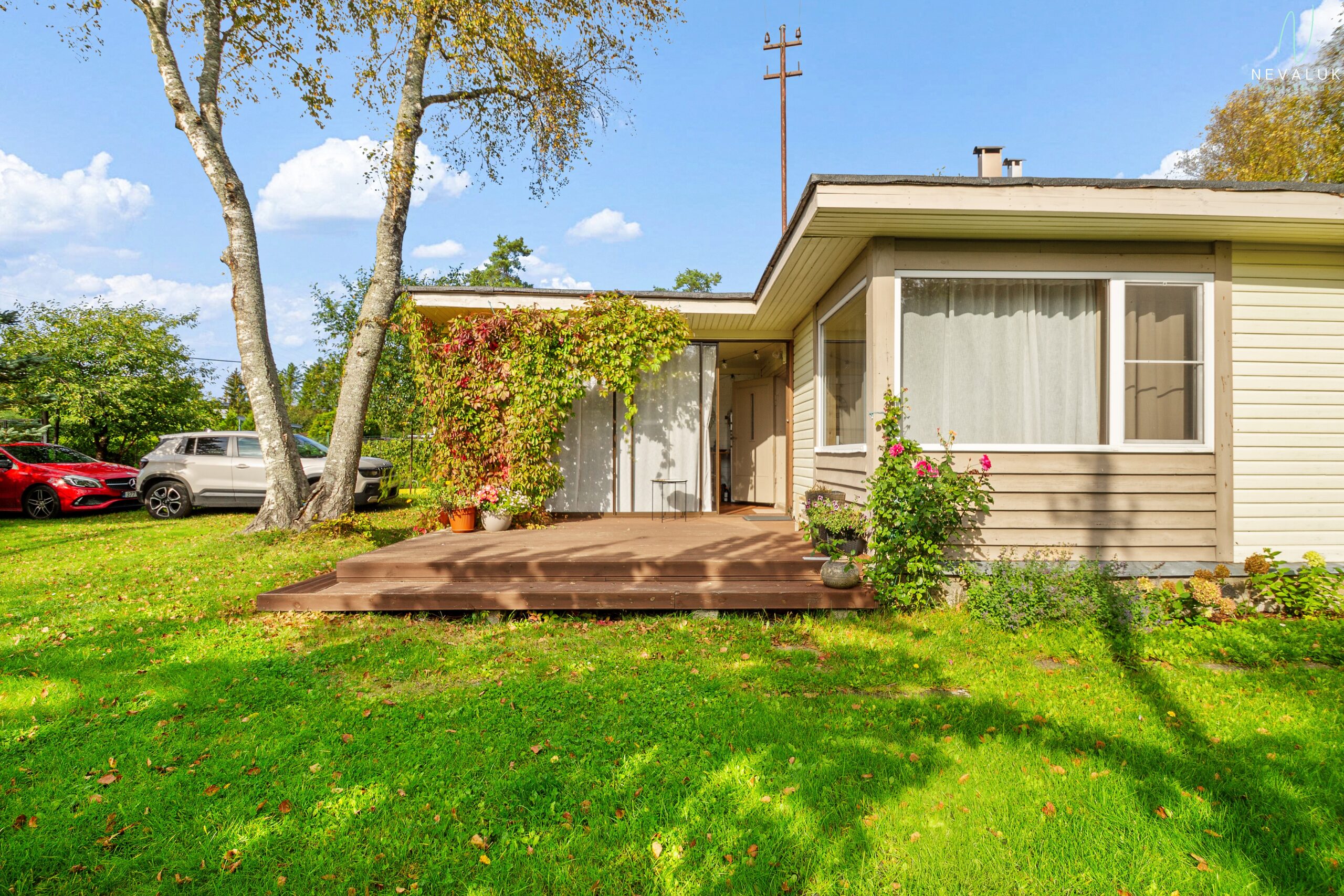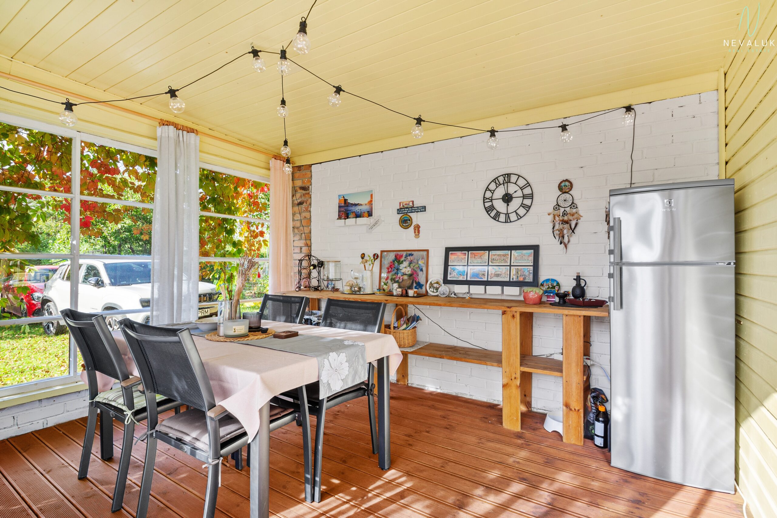 Eraldi rõõmu pakub klaasitud terrass lükandustega, mis on kui lisatuba suveõhtuteks pere või sõpradega. Terrassi ees on päikeseline plats, kuhu päike piilub peaaegu terve päeva. Suvila taga peidab end ka maja külge ehitatud suitsuahi, mis kingib võimaluse valmistada oma parimat suitsukala või -liha – juba järgmise suvepeo tähthetk on sellega ette planeeritud.