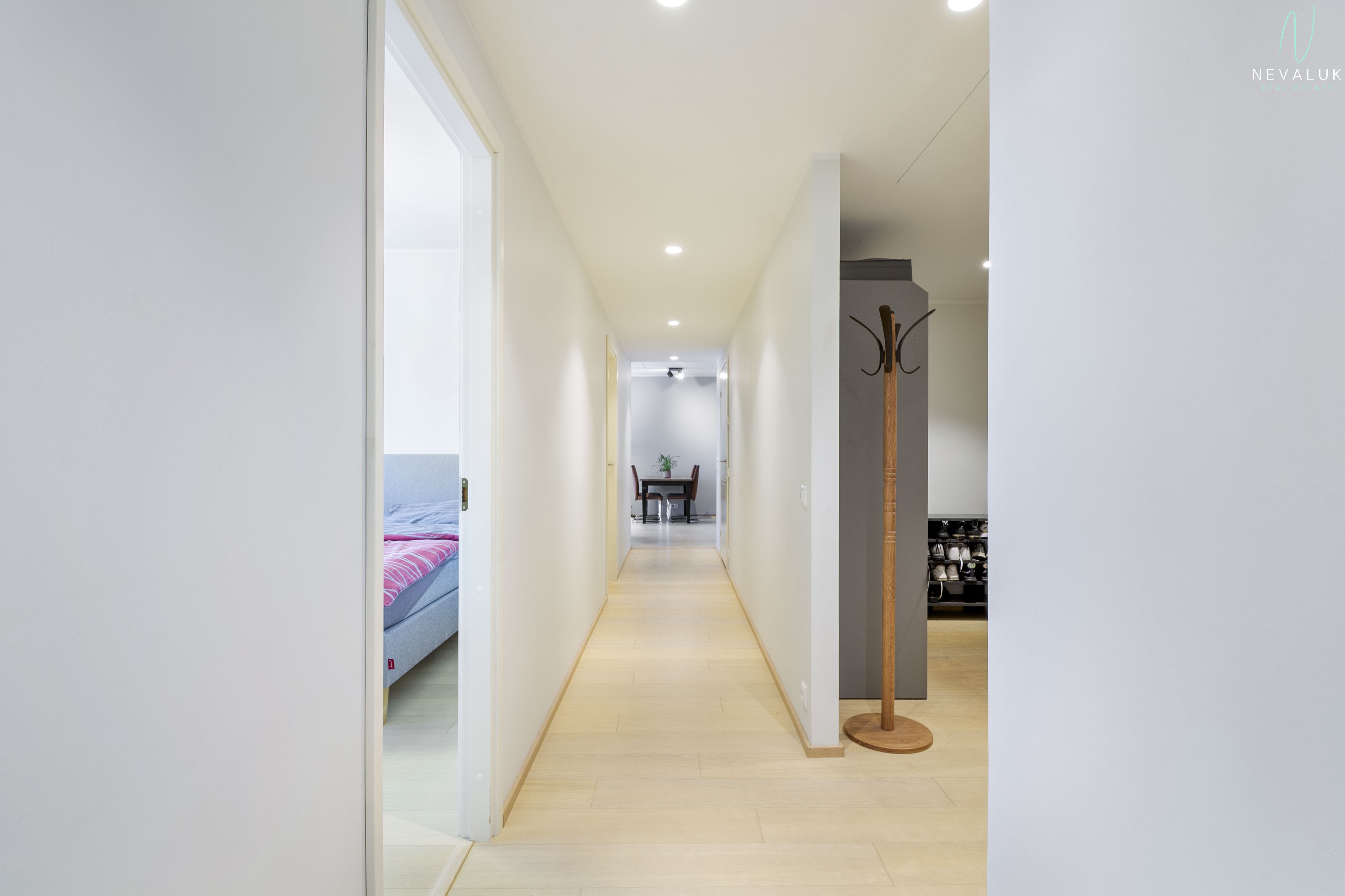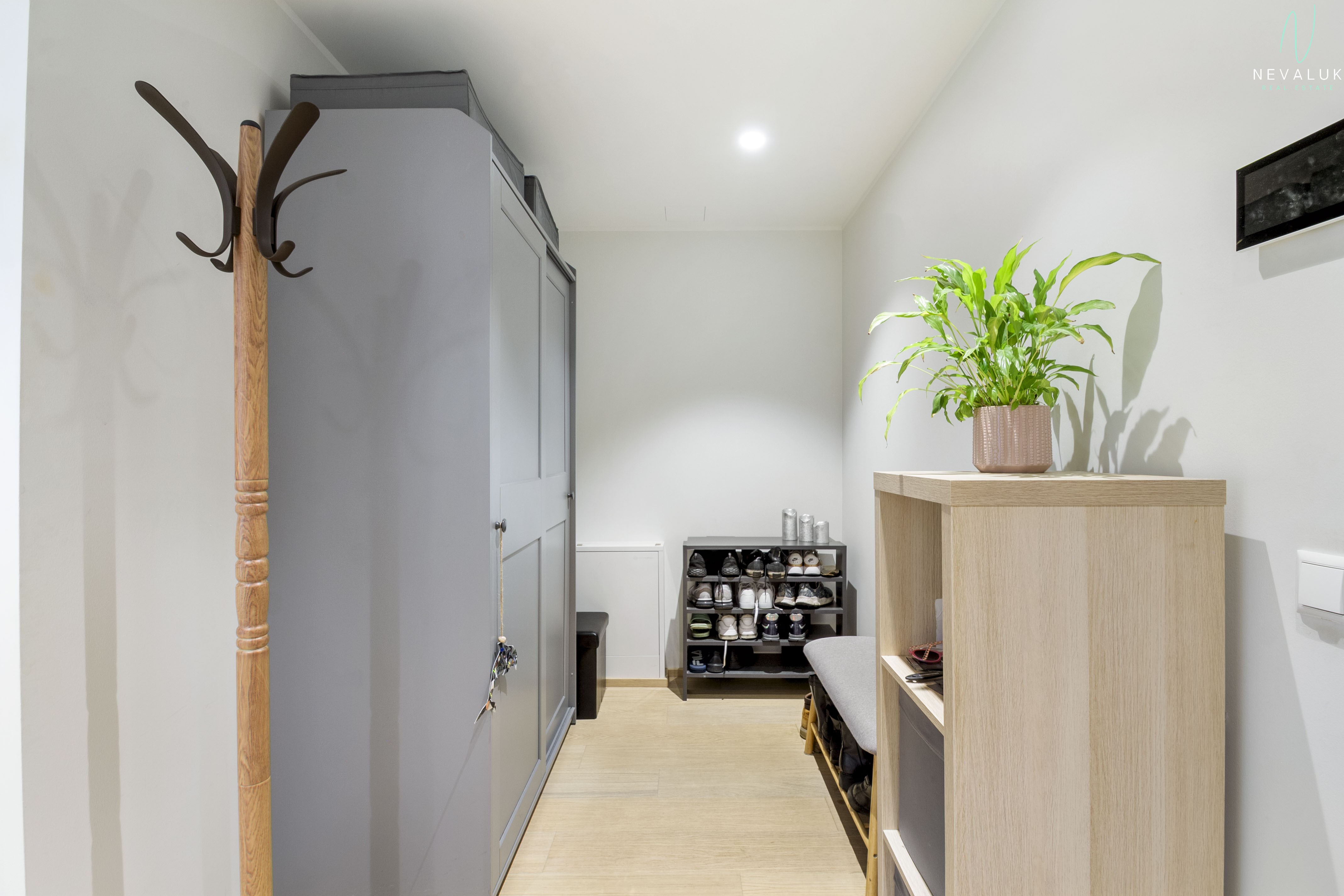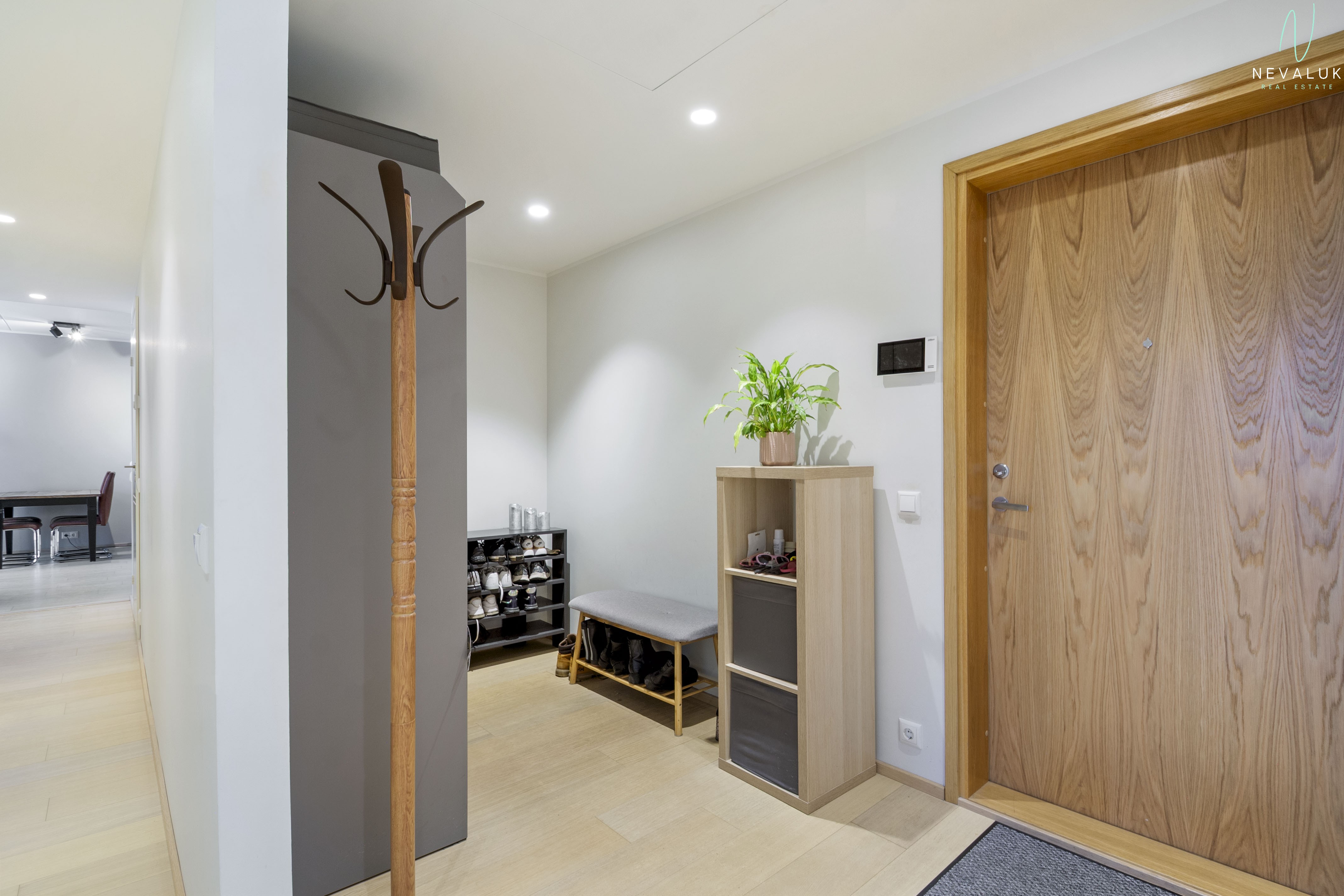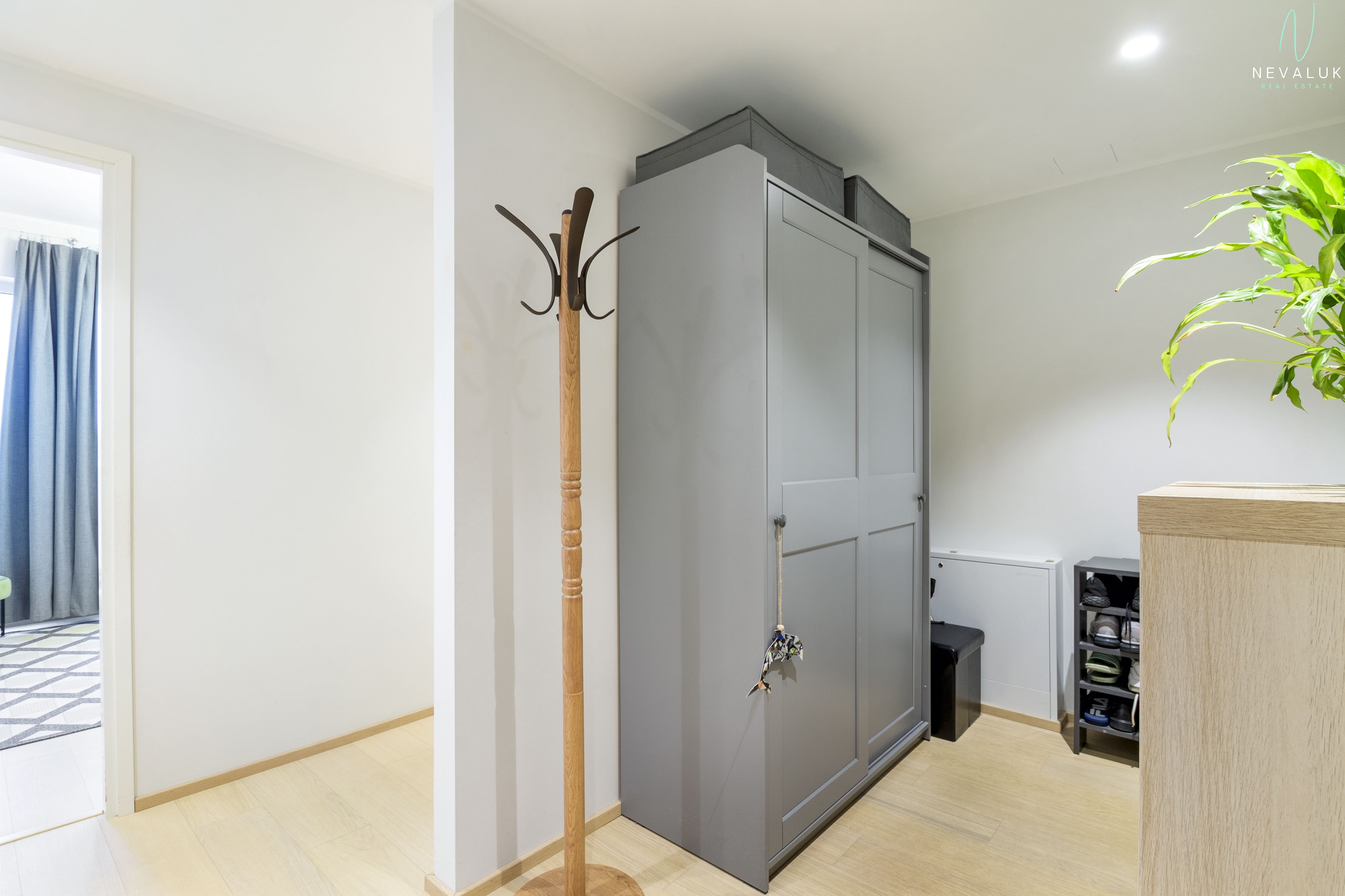 Korterisse sisenedes tervitab sind avar esik, kus on piisavalt ruumi kogu pere üleriietele ja jalatsitele. Siin asuvad ka elektrikilp, tehnokapp ning ventilatsiooni juhtpult – kõik kenasti silma alt ära, ent mugavalt ligipääsetav.