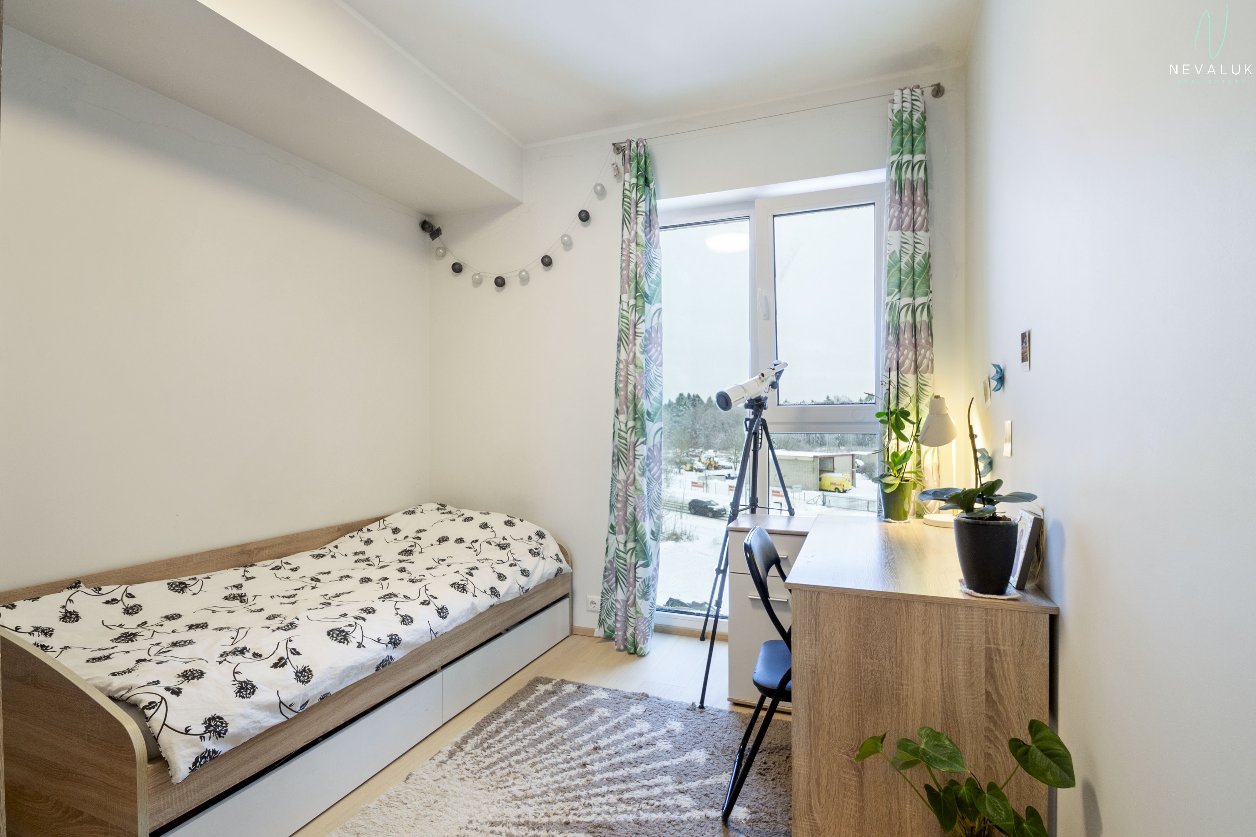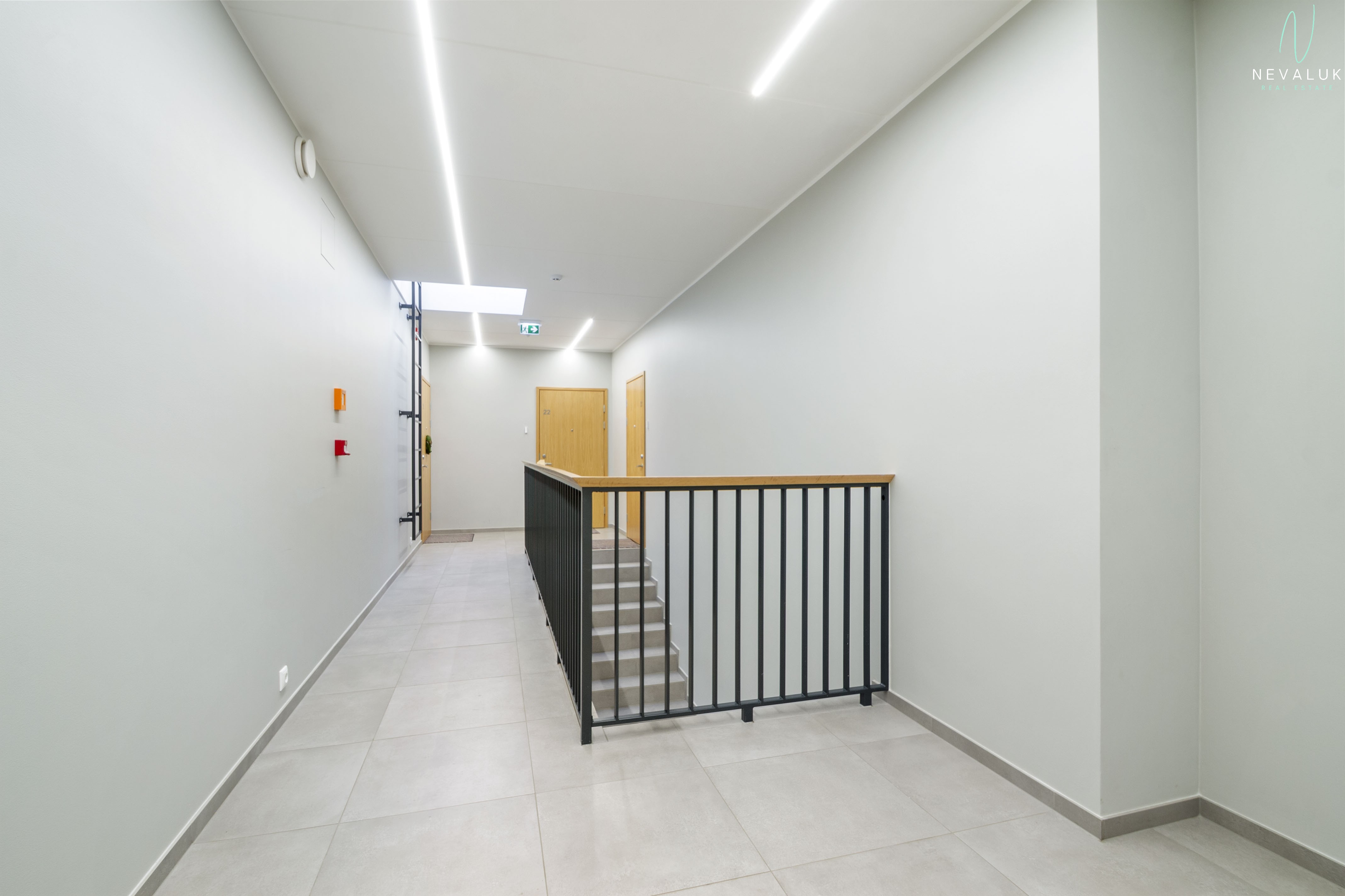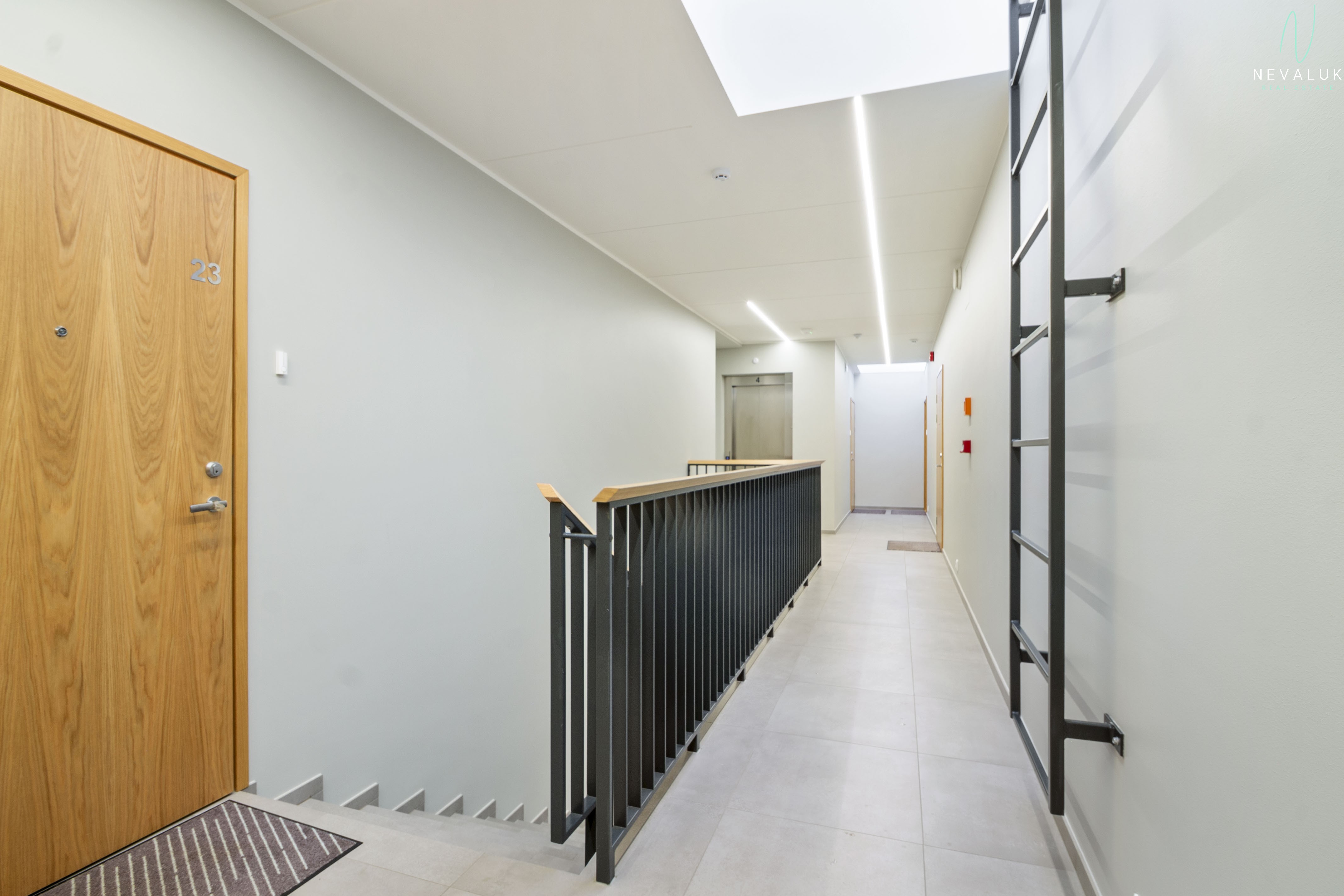 Korter asub 4-korruselise maja viimasel korrusel, pakkudes privaatsust ja avarust. Kõrged laed ja suured aknad lasevad ruumidesse rohkelt loomulikku valgust – kõik aknad avanevad hommiku- ja lõunapäikese poole, luues helge ja sooja meeleolu kogu päevaks.
