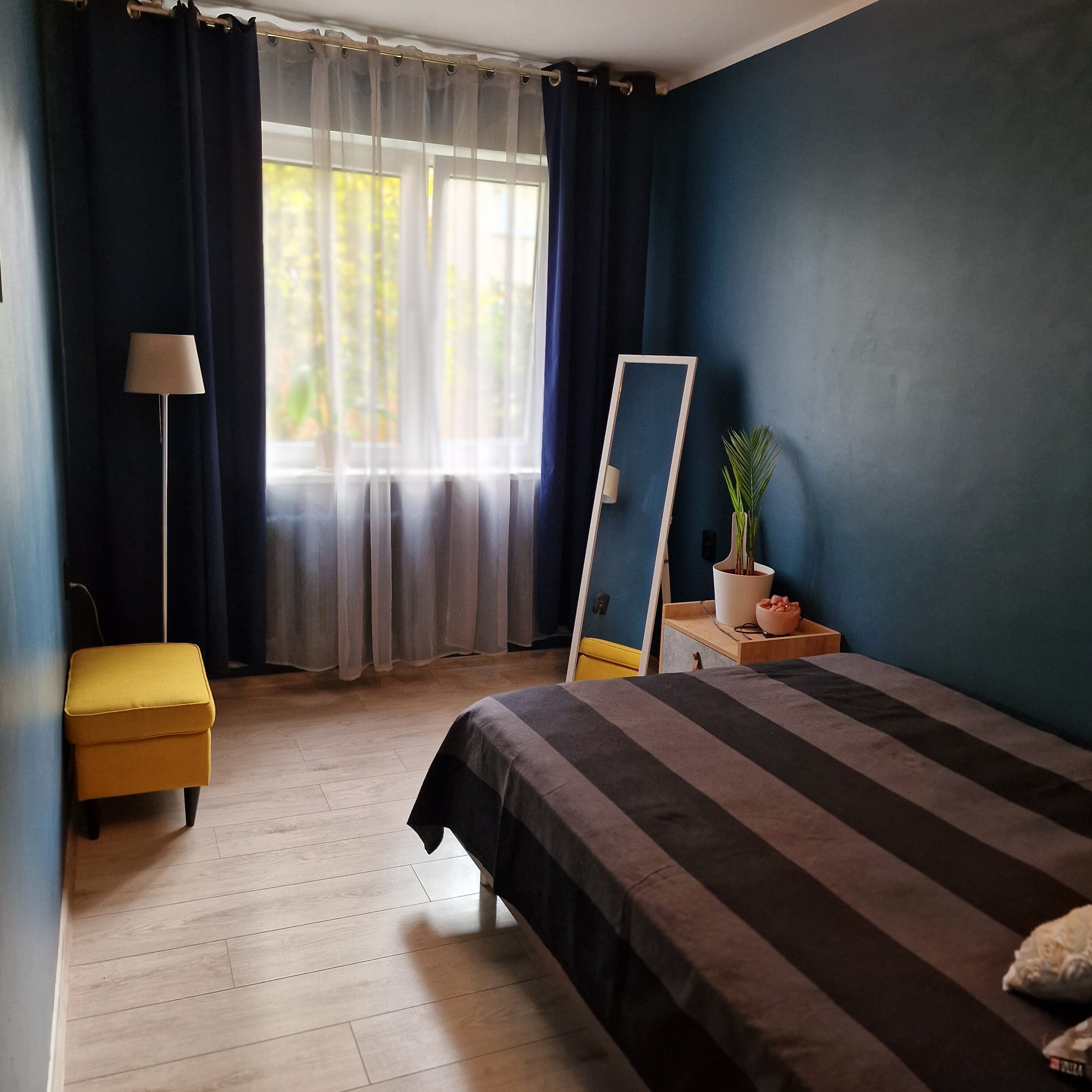 Selle kodu kahe toa vahel valitseb harmoonia: valgusküllane elutuba kutsub sind end diivanile kerra tõmbama, samal ajal kui magamistuba pakub vaikust ja rahu – justkui väike varjupaik keset linna.