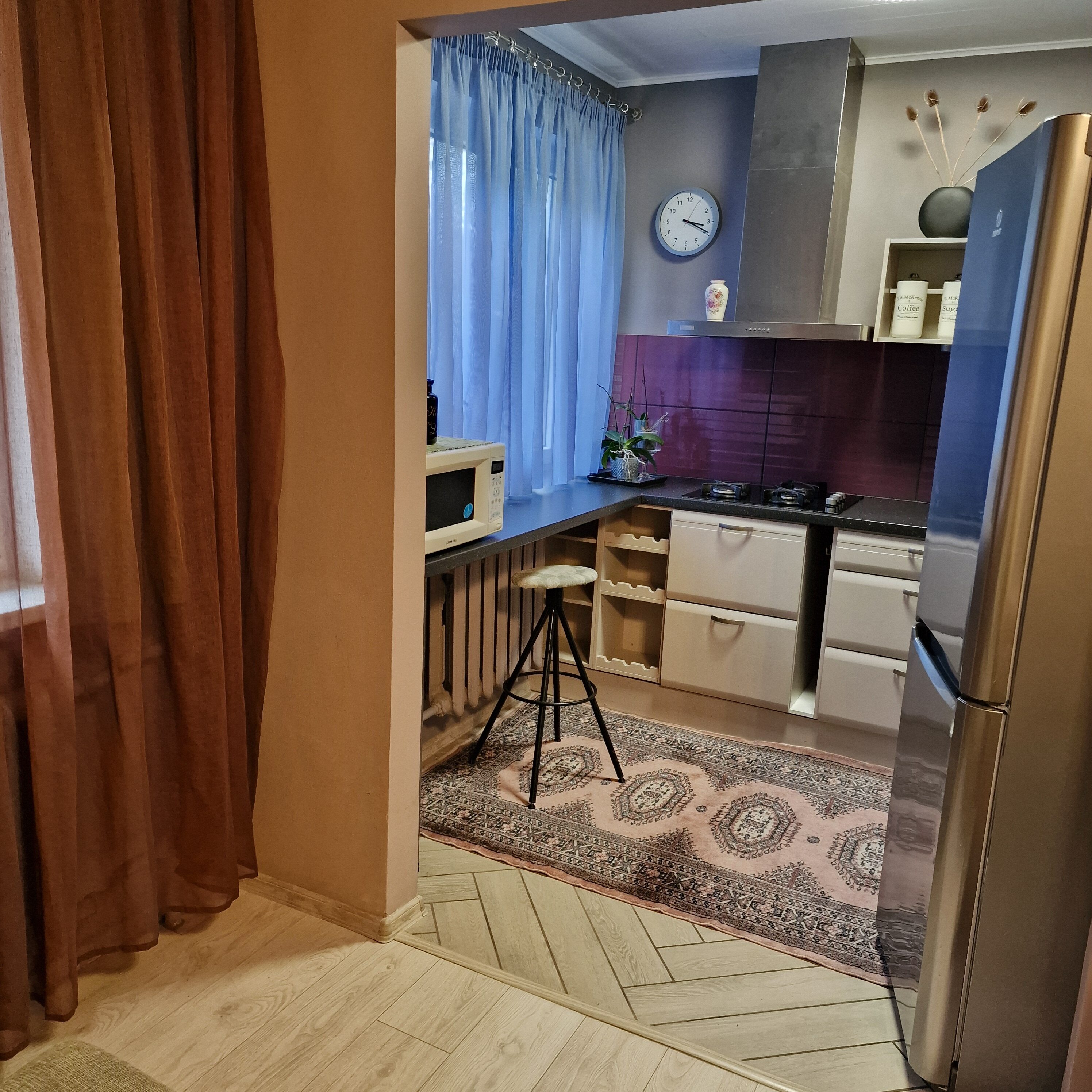 Korter asub esimesel korrusel, maja keskel – ideaalne paik, kus on soe talvel ja jahe suvel.